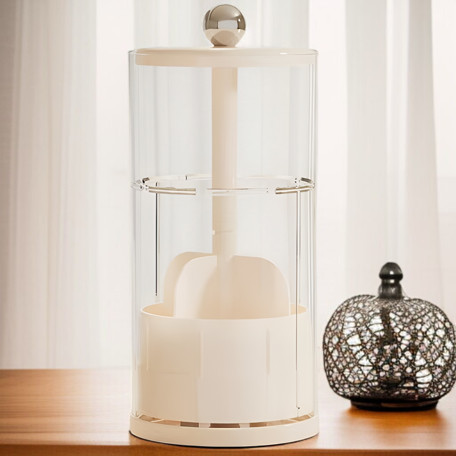 ● 回転式の収納デザインで、ブラシや化粧品を簡単に取り出せて整理整頓もラクラク。高級感あふれるクリームスタイルがデスクトップをおしゃれに演出します。